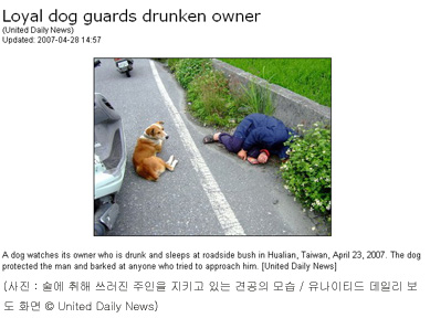 (»çÁø : ¼ú¿¡ ÃëÇØ ¾²·¯Áø ÁÖÀÎÀ» Áö۰í ÀÖ´Â °ß°øÀÇ ¸ð½À / À¯³ªÀÌÆ¼µå µ¥Àϸ® º¸µµ È­¸é)