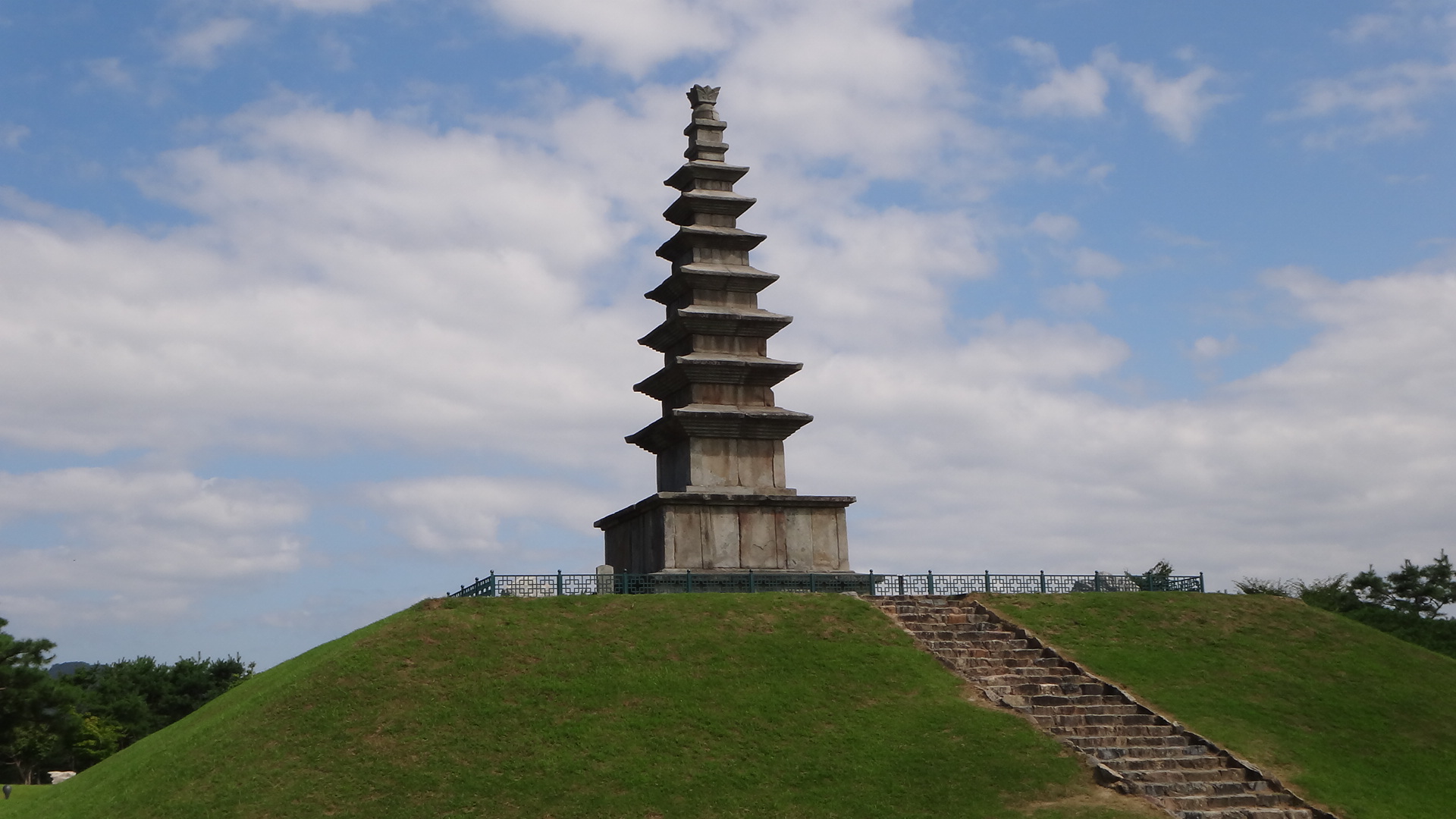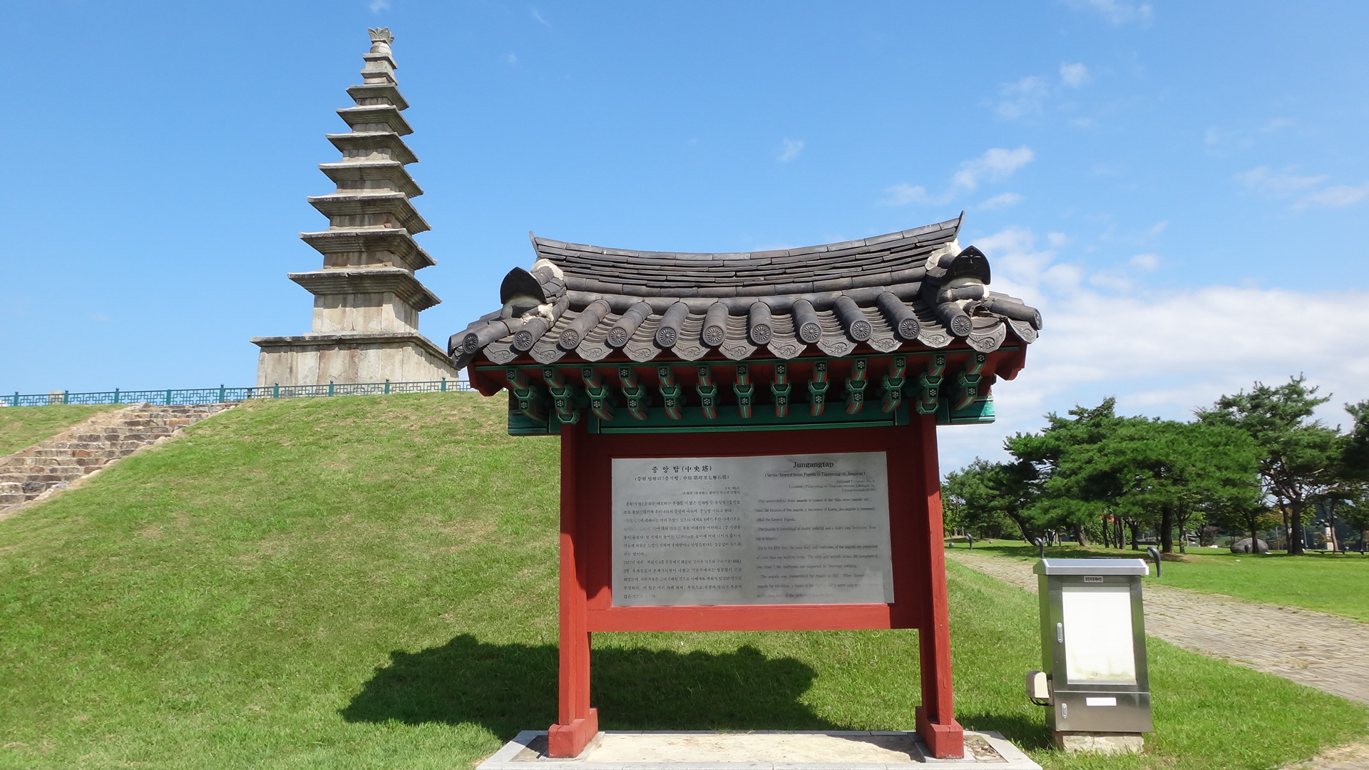 ÃæÁֽà °¡±Ý¸é žÆò¸® ³²ÇѰ µÐÄ¡. À̰÷¿¡ Áß¾Óž°ø¿øÀÌ ÀÚ¸®Çϰí ÀÖ´Ù. ¿Ö Áß¾Óž°ø¿øÀΰ¡ ÇÏ¸é ±¹º¸ Á¦6È£¿¡ ´ç´çÈ÷ À̸§À» ¿Ã¸° Áß¾ÓžÀÌ Àֱ⠶§¹®ÀÌ´Ù. Áß¿ø žÆò¸® Ä¥Ãþ¼®Å¾ÀÌ º» À̸§ÀÌ´Ù. ½Å¶ó ¿ø¼º¿Õ´ë(785~798³â)¿¡ ¼¼¿öÁø °ÍÀ¸·Î ÃßÁ¤µÇ´Â ÀÌ Å¾Àº ´ëÇѹα¹ÀÇ Áß¾Ó¿¡ À§Ä¡ÇÑ´Ù°í ÇØ¼ Áß¾ÓžÀ¸·Î ºÒ¸®°Ô µÇ¾ú´Ù. ÇöÀç ³²¾Æ ÀÖ´Â ½Å¶ó¼®Å¾ °¡¿îµ¥ ÀÌ Å¾º¸´Ù ±Ô¸ð°¡ Å« °ÍÀº ¾ø´Ù. Ȱ¾Ï ÀçÁú·Î ³ôÀ̰¡ 14.5m¿¡ À̸¥´Ù. ºñ·ÊÀûÀ¸·Î´Â ³Êºñ¿¡ ºñÇØ žÀÌ ´Ù¼Ò ³ô´Ù´Â ´À³¦À» ÁÖ±ä ÇÑ´Ù.
