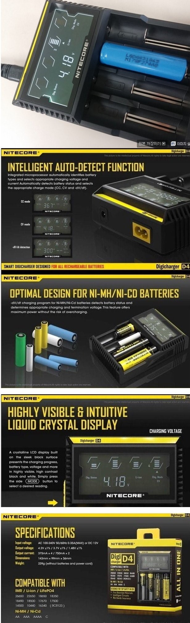 °¡¼ººñ ÃÖ°íÀÇ ¾ÈÀü¼º°ú ÆíÀǼºÀ» °¡Áø Nitecore D4 4±¸ ÃæÀü±â ÆÇ¸Å