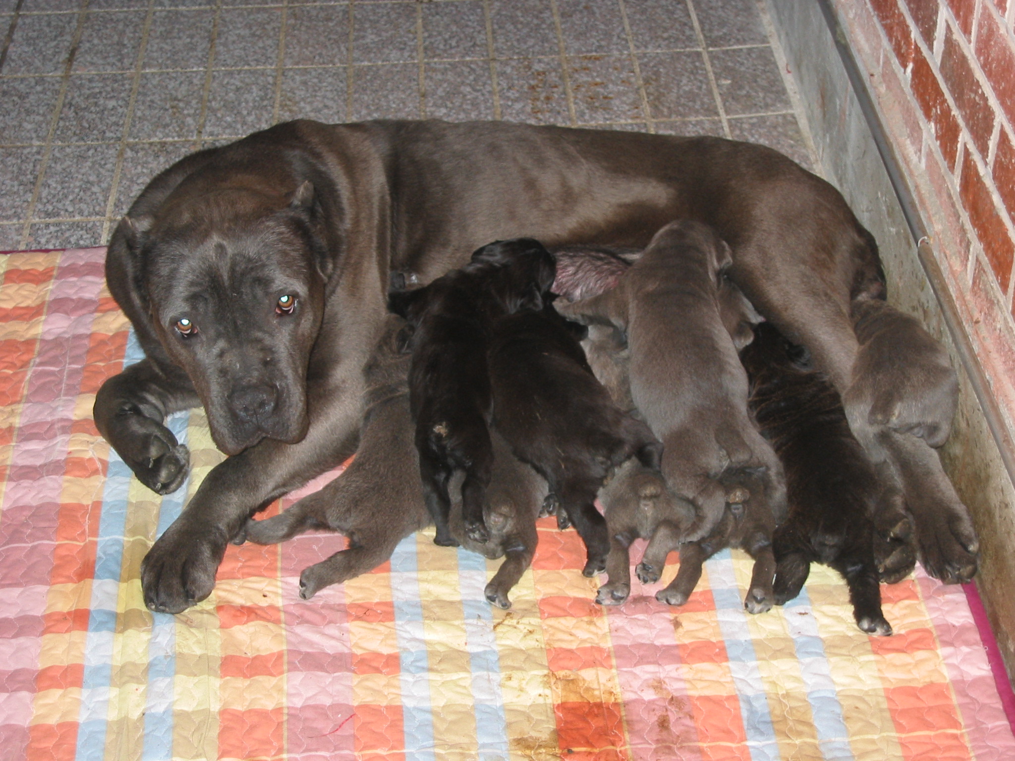 ÄÉÀÎ ÄÚ¸£¼Ò ÆÛ¿È ÄÉÀÎ ÄÚ¸£¼Ò (Cane Corso)´Â ÀÌÅ»¸®¾È ¸¶½ºÆ¼ÇÁ ¶Ç´Â ½Ã½Ç¸®¾Æ³ë ºê·£Ä¡¿¡·Î·Î ºÒ¸®¿ì±âµµ ÇÑ´Ù. ¿¾³¯ ·Î¸¶ÀÇ ¸ô·Î¼ö½º´Â µ¢Ä¡°¡ Å« Á¾·ù¿Í Á» ´õ ³¯·ÆÇÏ°í ´Ù·ç±â ½¬¿î Á¾À¸·Î °¥¶óÁ³´Âµ¥ ÀüÀÚ´Â ³×¿ÀÆú¸®Åº ¸¶½ºÆ¼ÇÁÀÇ Á¶»óÀ̰í, ÈÄÀÚ´Â ÄÉÀÎ ÄÚ¸£¼ÒÀÇ Á÷Á¢ÀûÀÎ Á¶»óÀÌ´Ù. ÀÌ °³´Â Áß¼¼¿¡ Å« µ¿¹°ÀÇ »ç³É°³·Î »ç¿ëµÇ¾ú´Âµ¥ ¸äµÅÁö, »ç½¿Àº ¹°·Ð °õ »ç³É¿¡µµ µ¿¿øµÇ¾ú´Ù´Â ±â·ÏÀÌ ÀÖ´Ù. ÀÌÅ»¸®¾Æ »ç¶÷µéÀº ÀÌ °³¾ß¸»·Î À¯ÀÏÇÑ ÃßÀû¿ë ¸¶½ºÆ¼ÇÁ¶ó°í ¸»ÇÑ´Ù. »ç³ÉÀÇ ÅðÁ¶·Î °¡ÃàÀ» µµÃàÀå±îÁö ¸ô°í °¡´Âµ¥ ¾²À̰ųª, °¡Ãຸȣ, ÁÖÅðæºñ µîÀ¸·Î ÁÖÀÓ¹«°¡ ¹Ù²î¾ú´Ù. 1987³â ¹Ì±¹¿¡ óÀ½ µµÀԵǾú°í, ÈǸ¢ÇÑ ¿Ü¸ð¿Í ÁÖÀο¡ ´ëÇÑ Ãæ¼º½É, ¿µ¸®ÇÔ, °¨¼ö¼º µîÀ¸·Î °ð ¸¹Àº ¾ÖÈ£°¡¸¦ »ç·ÎÀâ¾Ò°í, 1996³â¿¡ FCI´Â °ßÁ¾Ç¥ÁØÀ» Á¤ÇÏ¿´´Ù. ÀÌ °³ÀÇ ÀåÁ¡Àº ´Ù¸¥ Ä¿´Ù¶õ ü±¸ÀÇ °ßÁ¾µé°ú´Â ´Ù¸£°Ô º´Ä¡·¹¸¦ °ÅÀÇ ÇÏÁö ¾Ê´Â´Ù´Â Á¡ÀÌ´Ù. Å©±â´Â ¼öÄÆÀÌ 62~68cm¿¡ 42~50kgÀ̸ç, ¾ÏÄÆÀÌ 58~64cm¿¡ 38~45kgÀÌ´Ù. ü°íÀÇ ¿ÀÂ÷´Â 2cm ±îÁö Çã¿ëµÈ´Ù. »À´ë´Â ±½°í, ¸öüÀÇ ±æÀ̴ ü°íº¸´Ù ¾à°£ ´õ ±æ¸ç, °¡½¿Àº ³Ð°í ±í´Ù. ¸öü µÞºÎºÐÀº ±ÙÀ°ÀÌ ¹ß´ÞµÇ¾î ÀÖ°í °¢ÀÌ Àß ÀâÇôÁ® ÀÖ´Ù. ²¿¸®´Â º»·¡ ±æÀÌÀÇ 3ºÐÀÇ 1¿¡¼­ Àß¶óÁØ´Ù. ÀÌ °³ÀÇ °¡Àå Áß¿äÇÑ °üÁ¡Àº ¸ö¸ÅÀÇ ±ÕÇü°ú ´Ü·ÃµÈ ¿îµ¿Ã¼ÁúÀÌ´Ù. ÅÐÀº ª°í Á¶¹ÐÇϸç ÅлöÀº °ËÁ¤ ´ÜÀÏ»ö, °ËÁ¤»ö°ú ºÓÀº »öÀÇ È¥ÇÕ, ¹ã»ö°ú Ȳ°¥»ö°ú Ǫ¸¥»öÀÇ ´ÜÀÏ»ö ¶Ç´Â ÀÌ µé»öÀÇ ¾ó·èÀÌ ÀÖ´Â °Í µîÀÌ´Ù. °¡½¿, ¸ñ, ÅÎ, ¹ß°¡¶ô ³¡¿¡ Èò»öÀÌ ÀÖ´Â °ÍÀº Çã¿ëµÇ³ª, ¾ó±¼À̳ª ¸öü¿¡ Èò»öÀÌ Àִ°ÍÀº Çã¿ëµÇÁö ¾Ê´Â´Ù. ´«Àº Åлö°ú ÀÏÄ¡Çϰųª °ËÁ¤»ö¿¡¼­ ÇìÁñ³Ó»öÀÇ ¹üÀ§ ¾È¿¡ µå´Â »öÀÌ´Ù. ¡¡