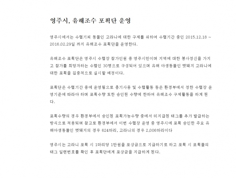 Áö³ÇØ¿¡µµ ¼ö·ÆÀ» Ç®¾úÁö¸¸ À¯ÇØÁ¶¼ö±¸Á¦·Î ¸·Áö¸øÇÑ ¾ß»ýµ¿¹°ÀÇ ¼ýÀÚ¸¦ ÁÙÀ̰íÀÚ..
