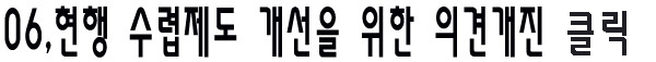 ȯ°æºÎ¿¡¼´Â ÇöÇà¼ö·ÆÁ¦µµÀÇ °³¼±À» À§ÇÑ ÁغñÀÛ¾÷À¸·Î 2006³â 2¿ù ÇöÀç ºÎ³»¿¡ Task ForceÆÀÀ» ±¸¼ºÇÑ »óÅÂÀ̸ç À̸¦ÅëÇØ °¢°èÀÇ ´Ù¾çÇÑ ÀǰßÀ» ÃëÇÕÇÏ¿© ±Ý³â 6¿ù±îÁö °ü·ÃÀÛ¾÷À» ¸¶¹«¸® ÇÒ ¿¹Á¤À̶ó°í ÇÕ´Ï´Ù. Çö½ÇÀûÀ¸·Î »ý°¢ÇØ º¸´õ¶óµµ ±Ý³âµµÀÇ ¼ö·ÆÀåÀÌ ¿øÈ°ÇÏ°Ô °³ÀåµÇ±â À§Çؼ´Â ´çÀå 7~8¿ù°æºÎÅÍ ¿±Àå°³Àå¿¡ °üÇÑ ÇàÁ¤ÀýÂ÷¿¡ µ¹ÀÔÇÔ°ú µ¿½Ã¿¡ Á¶¼ö¼½Ä¹ÐµµÁ¶»ç°¡ ¼±ÇàµÇ¾î¾ß¸¸ ÇÏ´Â ±î´ß¿¡ ÀÌ ±â°£µéÀº Çö½ÇÀûÀ¸·Î ±×¸® ¸¹Àº ¿©À¯°¡ ÀÖ´Ù°í´Â »ý°¢µÇÁö ¾Ê½À´Ï´Ù