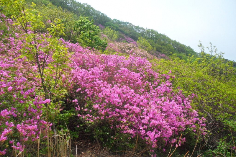ÁÖºÀ¿ì¸®´Â Å©°Ô ÇϺÀ,ÁߺÀ,»óºÀÀ¸·Î ³ª´¶´Ù. »ï¶ó¸¸»óÀ» Àü½ÃÇØ ³õÀº µíÇÑ ¸ð»êÀç(767m)ÀÇ ¹ÙÀ§»êÀÌ Àý°æÀÌ¸ç ±× ¹Û¿¡ ºÏ¼ÂÊ ´É¼±À» Ÿ°í ÆîÃÄÁö´Â Ȳ¸ÅÆòÀüÀÇ Ã¶Âß ±º¶ô°ú ¹«Áö°³ÅÍ, Ȳ¸Å»ê¼ºÀÇ ¼ø°á¹ÙÀ§, ±¹»ç´ç(ÏÐÞæÓÑ) µîÀÌ º¼ ¸¸ÇÑ °÷À¸·Î ²ÅÈù´Ù.